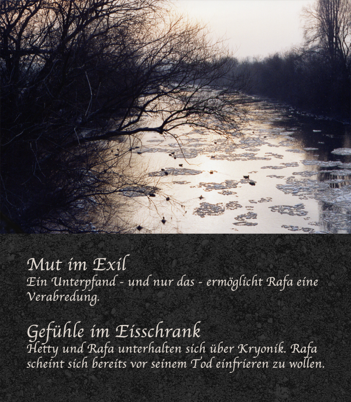 "Gut, daß du ankommst. Ich habe das im 'Exil' nur gesagt, um Greta zu testen. Ich wollte wissen, ob sie dir das gleich weitererzählt, was ich ihr über dich sage. Ich wollte herausfinden, wem ich was erzählen darf."
